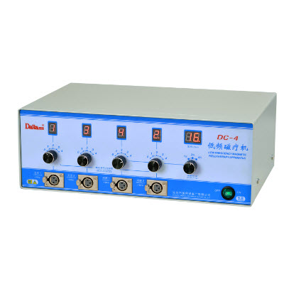 DC-4型低頻磁療機產品特點:1.輸出磁場強度:7~25mT,四檔可調。2.輸出插口與間斷時間:(a)正弦波二路(“交變1”插口和“交變2”插口)。(b)間斷正弦波二路(“間斷1”插口和“間斷2”插口...